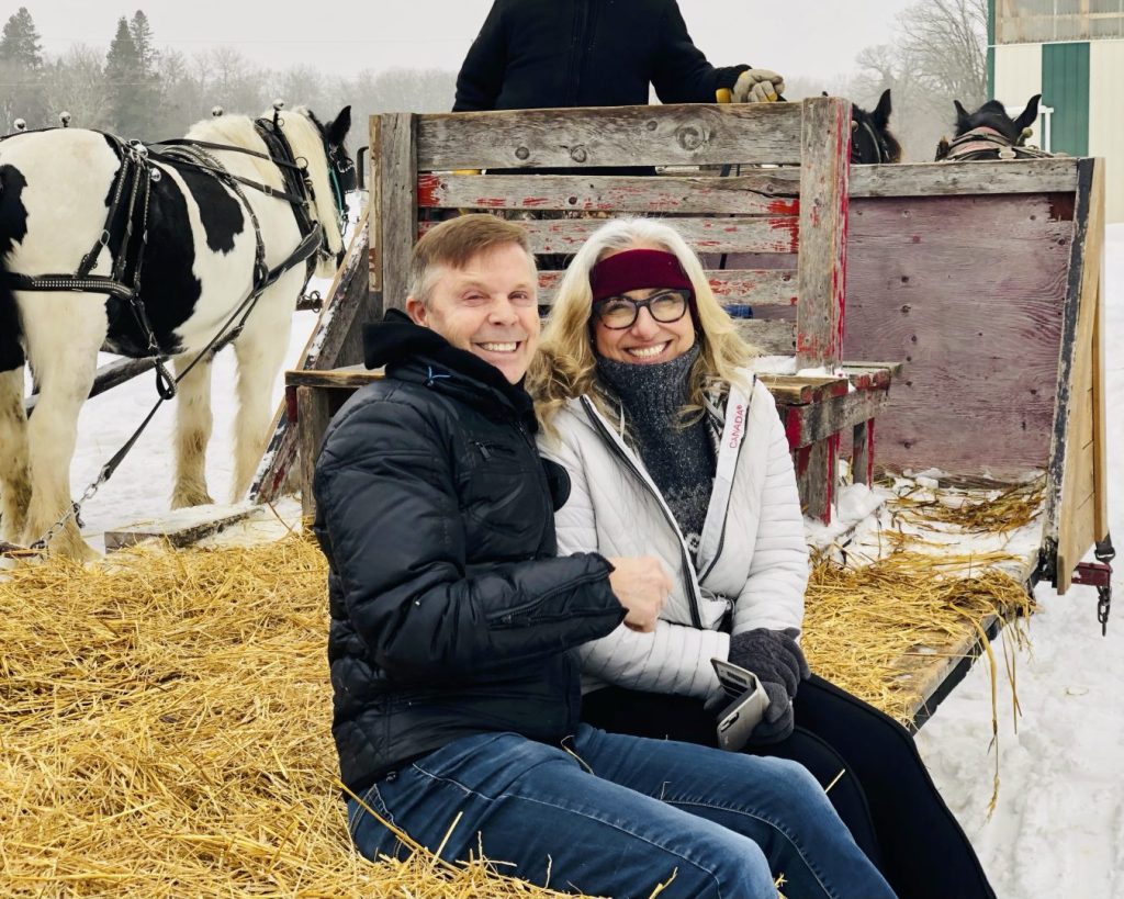 With spirits and cups raised high, the majority of the adults without young ones sit out the first ride to enjoy a delicious steak, caesar salad and roasted potato. A bottle of vino here and there or a warm cup of coffee or tea kept riders warm through the afternoon. The sound of sleigh bells, Christmas Carrol’s, love and laughter filled the air. There is a lot of petting the great horses and taking a few up close and personal pictures with the powerful animals.