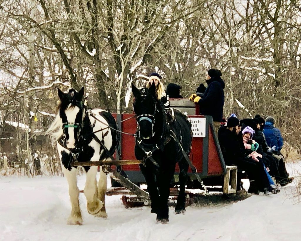 Brothers and sisters alike share stories, cuddled under blankets and spread holiday cheer as the sleighs glide through the windproof woods of Bird’s Hill.
